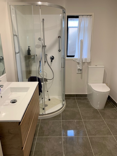Recently renovated ensuite with extra grab rails for elderly homeowners