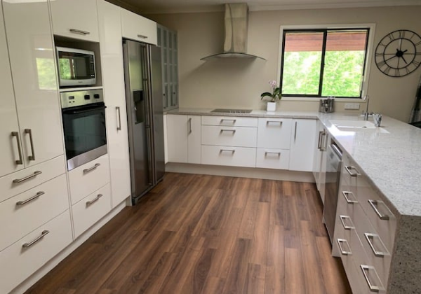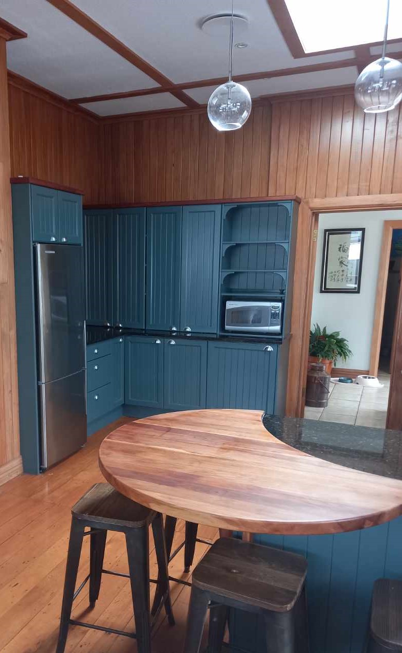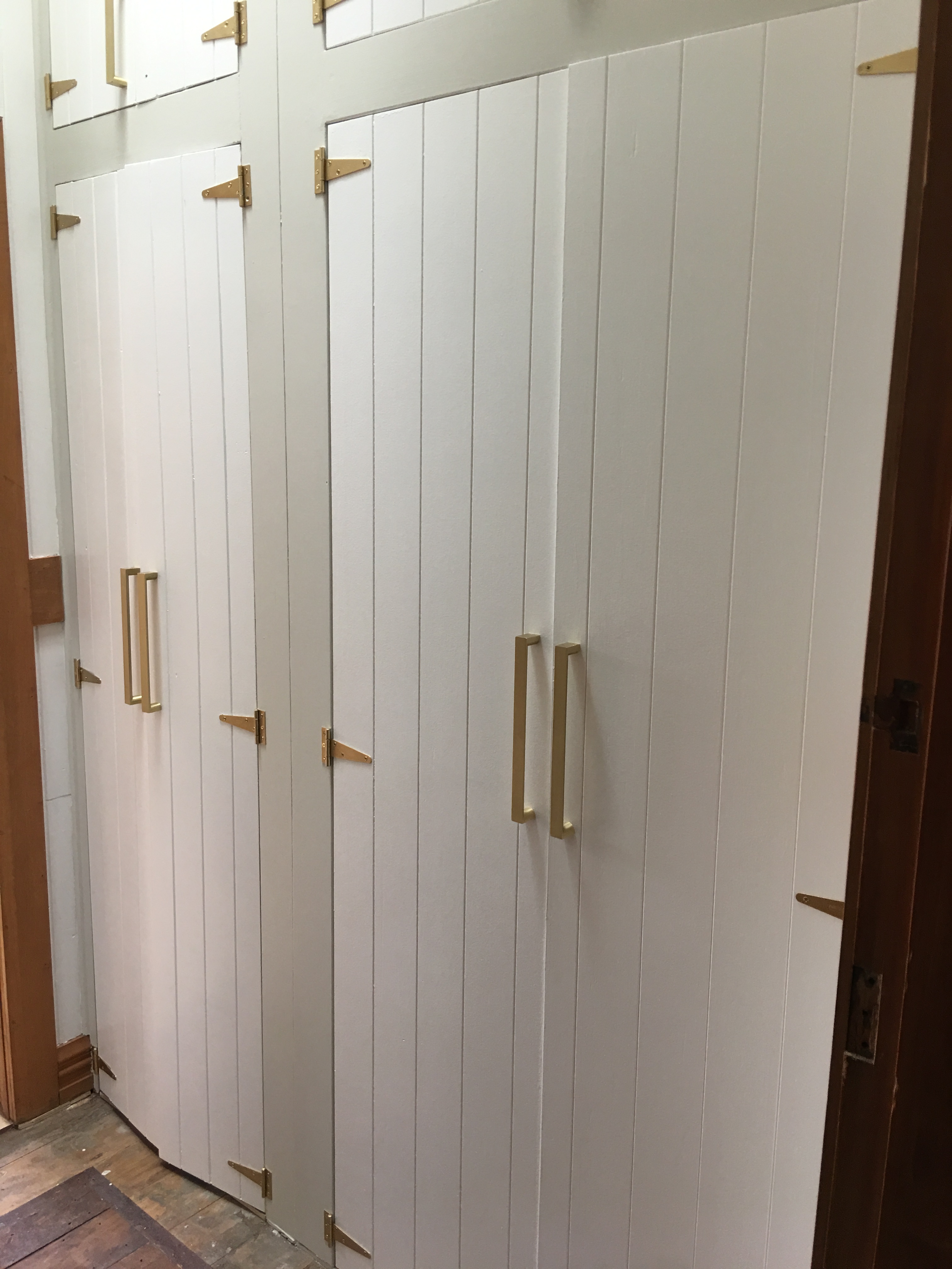 A fresh coat of paint and changing the hinges and handles breathes new life into old cupboards